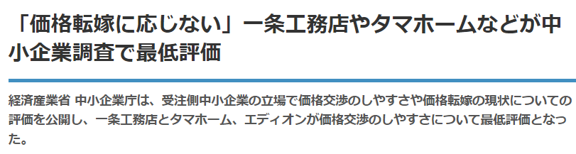 一条って下請け軽視がヒドいらしく、その結果杜撰な施工になりがちみたいなの大工が暴露してるツイートよく目にするんだけど本当なのかな