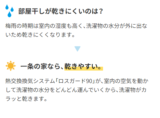 部屋干し臭も無いしコレは一条の家に住んでかなり良かったポイント