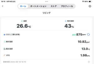 朝2階部屋の扉全部開けて6畳の弱冷房エアコン除湿にして出てって帰ったら21℃の湿度66%