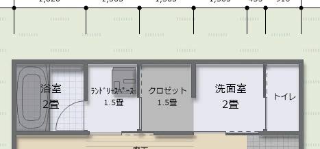 ここの間取りについて皆さんの意見を聞きたいのですが、1番左に風呂場と1番右にトイレ、その隣に洗面所は確定だとしてその他のランドリー、クローゼット、洗面所の大きさや並びはどうしますか?