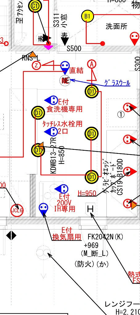 自分はキッチン上部は60形ビーム角24度の集光タイプ2灯で通路側60形3灯にしましたよ