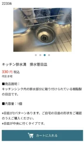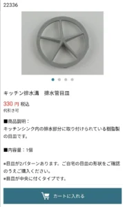 一条アプリでオンラインショッピング見てたら、キッチンの部品で排水溝の部品が一覧にあった